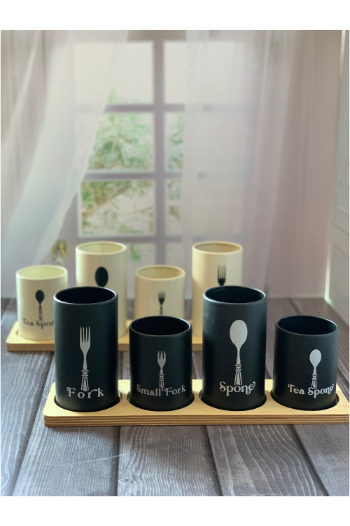 ست قاشق چنگال فلزی بازیره چوبی
