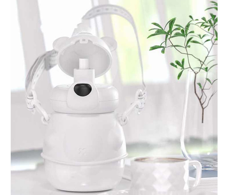 روی درب محصول که شبیه به سر یک خرس کلاه دار است، اگر بینی خرس را فشار دهید، درب قسمت نی دار باز می شود.